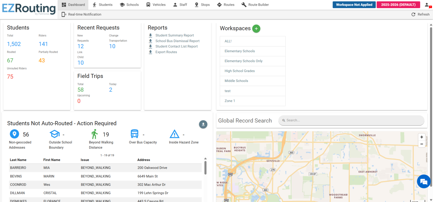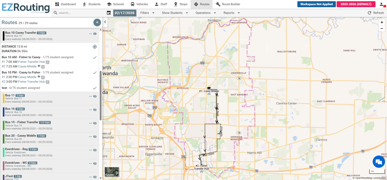 Smarter School Bus Routing, Finally Done Right. The EZRouting Suite helps you plan and manage your transportation operations more efficiently, transparently, and safely. Trusted by school districts nationwide, our integrated platform streamlines routing, GPS visibility, parent communication, ridership tracking, and compliance tools in a single system. With predictable pricing, unlimited user licenses, and implementation in 30 days or less, EZRouting puts your district in control of student transportation — reducing costs, improving safety, and strengthening community trust.